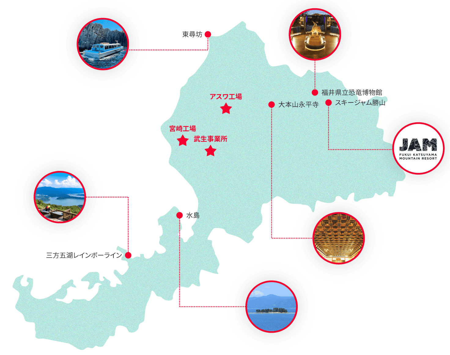 歴史と文化も息づく土地であり、越前和紙や若狭塗などの伝統工芸、東尋坊や永平寺など全国的に知られる名所が点在。