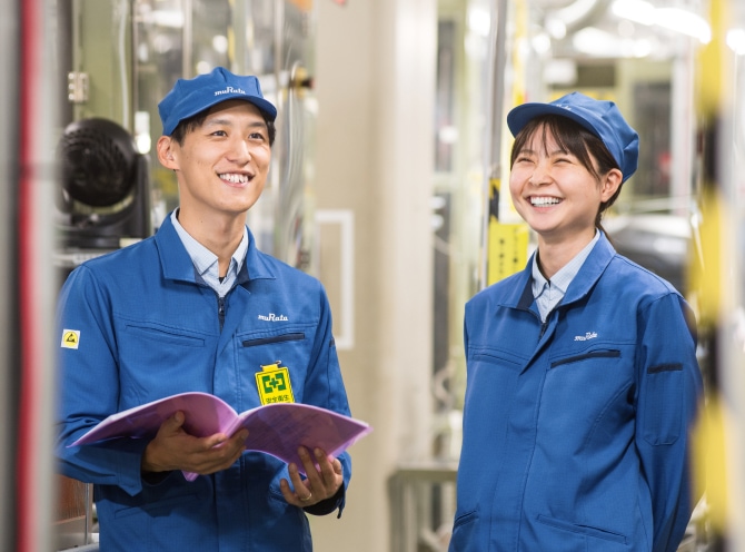 自分の仕事の成果を決めるのは、いかに現場と協働できるかです。たとえば新商品を立ち上げる際には、現場の作業者や設備担当者と一緒に、作業手順やレイアウトを見直します。すると、スタッフ同士の議論の場では出てこない問題が顕在化してくることもしばしば。そんなときは現場の意見をもとに、安全かつ効率の良い製造現場を作り上げていきます。関係部門を巻き込んで「よりよい製品を提供できるムラタ」を創っていくことが、自分の所属する製造部に求められていること。会社が進むべき道や自らの理念を丁寧に語り、共感してもらうことで、誰もがより主体的に行動してくれるようになります。製造が中心となってそんな雰囲気をつくりつつ、現場からさまざまな情報を上手く吸い上げて、ベストな製造体制を整えていきたいです。