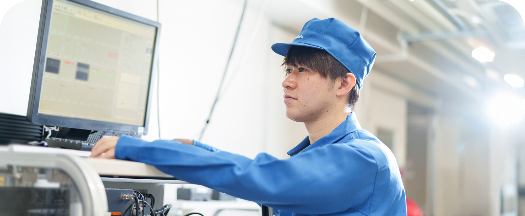 ライン品管の立場として、仕事で大切にしているのは「データを活用した正確な品質管理」と「現場との密なコミュニケーション」です。工程現場から得られるデータをもとに、不良の兆候を早期に察知し、迅速な対応を心掛けています。また、関係部門とデータの認識を合わせることで、品質課題の共有と解決をスムーズに進められます。さらに、データだけでなく現物確認も欠かさず行い、実際の製品状態を把握することで、より正確な判断を下せるよう意識しています。これらを通じて、安定した品質を維持し続けることをめざしています。