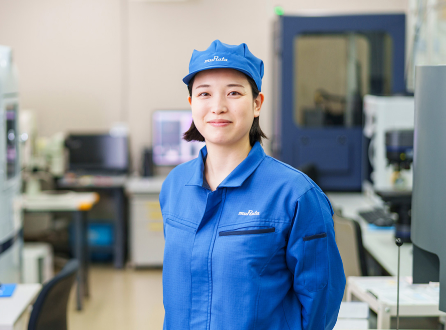 私は教育学部出身で、人の役に立ちたいという思いから当初は教員をめざしていました。出雲村田は入社試験の時期が早かったこともあり、試験や面接の練習になりそう、という考えがきっかけでしたが、会社のことを調べていくうちに、世界中に製品を供給し、多くの人々の安全と信頼を支えていることを知りました。