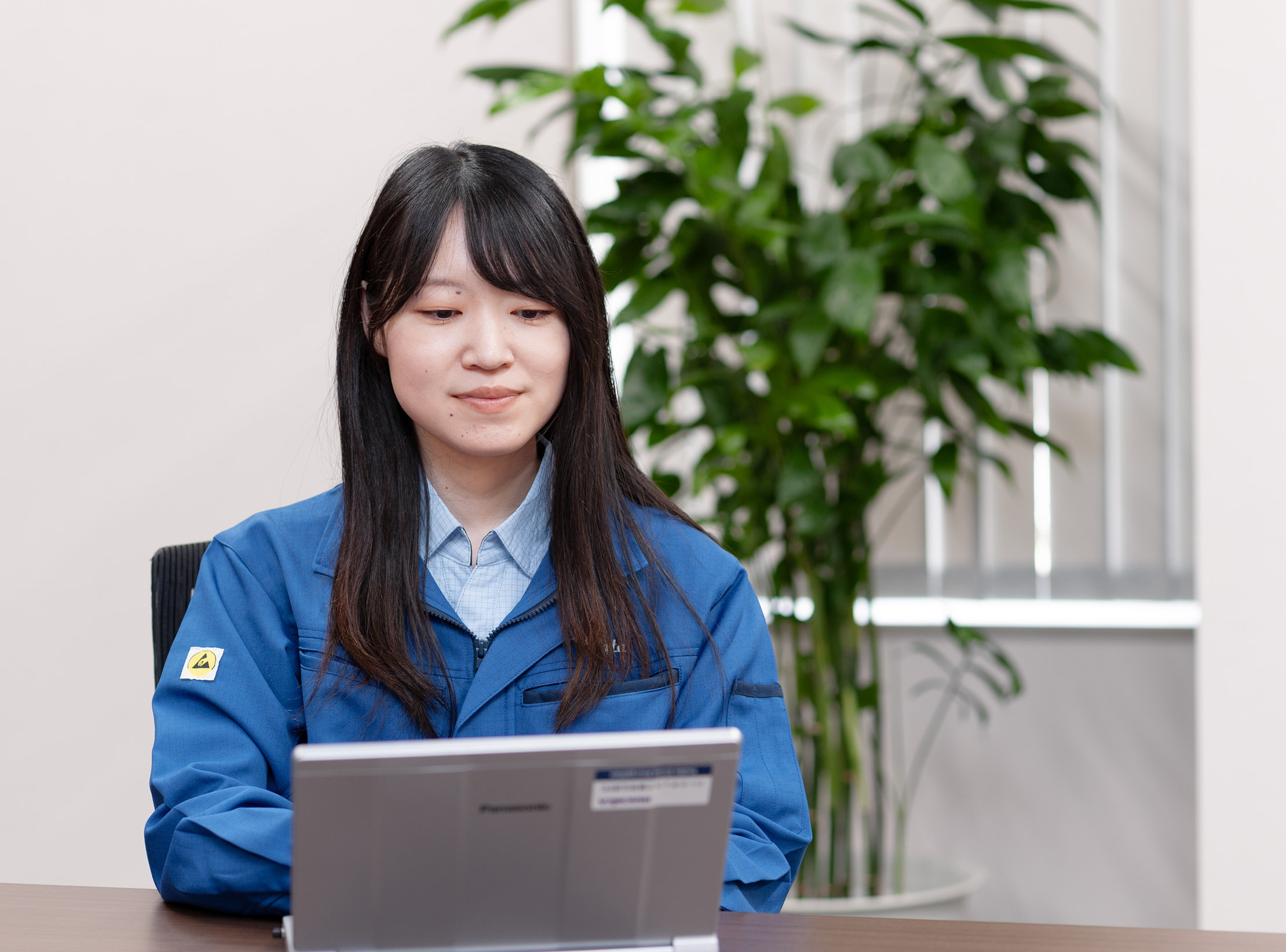 今後の目標は、ここまで育ててくださった上司や先輩方、さらには会社に対して恩返しができるようになることです。そして、今まで教えていただいたことを、後輩にも伝えていけるような先輩になっていきたい。そのために、これまで以上に積極的なコミュニケーションや、より広い視野を持った検討を重ね、ムラタにとって利のある、利用者の皆さんに寄り添った工程管理システム構築を目指していきたいと思います。