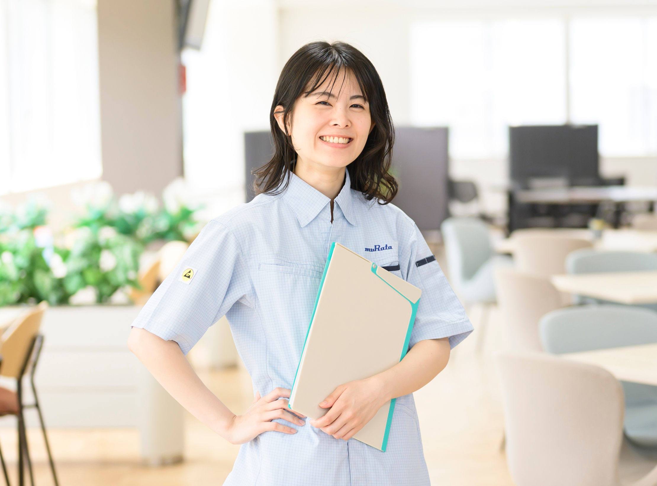 私が所属するIE課の「IE」は「インダストリアル・エンジニアリング」の略。金沢村田製作所をNo.1の製造拠点にすることを目標に、人・設備・材料・情報を総合し、最も効率的で経済的な製造部の設計・確立に取り組んでいます。