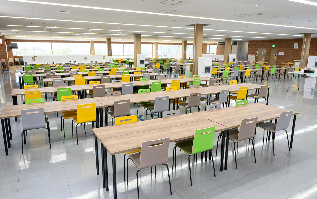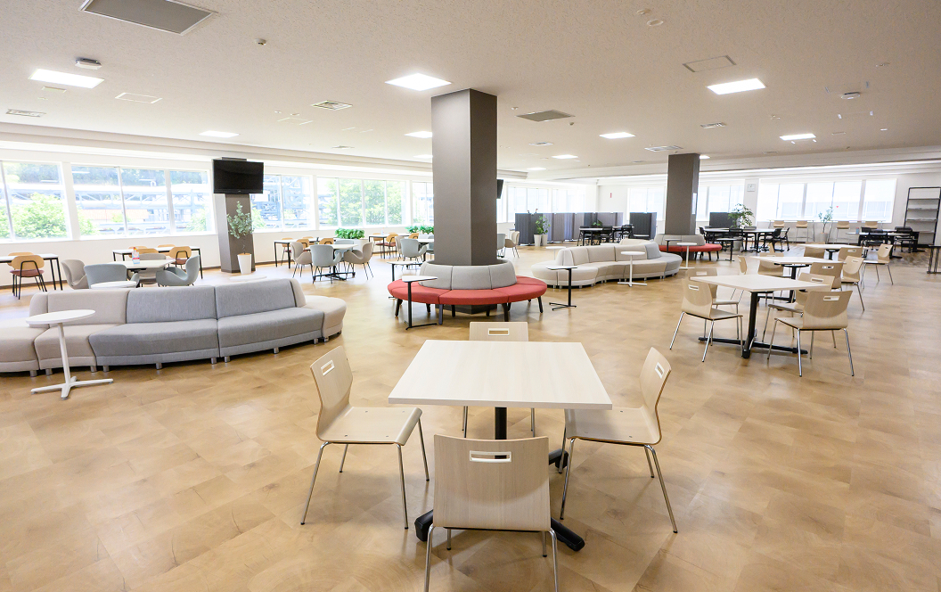社屋間の移動は室内の渡り廊下がありますので、悪天候時でも楽に移動できます。