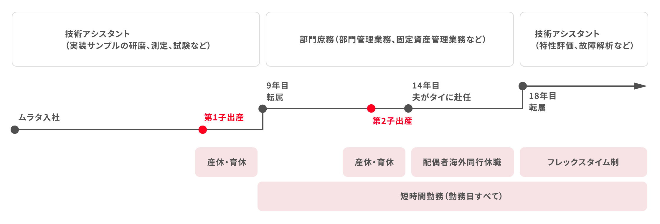 ムラタ勤続中に、二度の産休育休、そして夫の海外赴任への同行と、大きなライフイベントがありました。